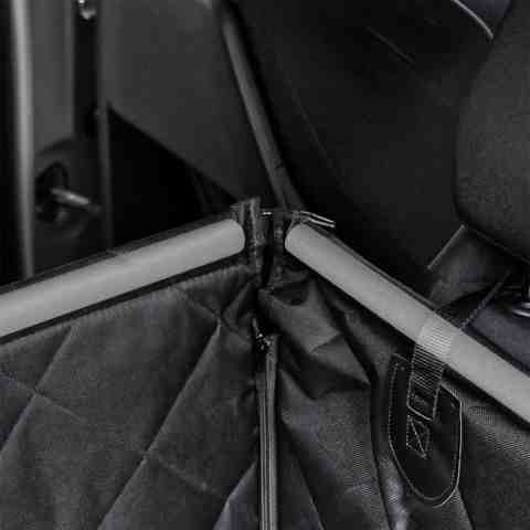 ZAPEWNIA czysty samochód – wystarczy przetrzeć fotelik wilgotną szmatką, otrzepać delikatnie z sierści lub też zdjąć ze stelaża i włożyć do pralki. Sam fotelik tworzy kojec, który skutecznie uniemożliwia kontakt z tapicerką, oknami czy przednimi siedzeniami.