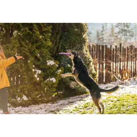 Frisbee to jedna z najpopularniejszych zabawek dla psów, oferująca godziny wspaniałej zabawy zarówno dla pupila, jak i jego właściciela, niezależnie od wieku. Pomaga w nauce aportowania, sprawiając, że pies będzie szczęśliwy i spełniony.