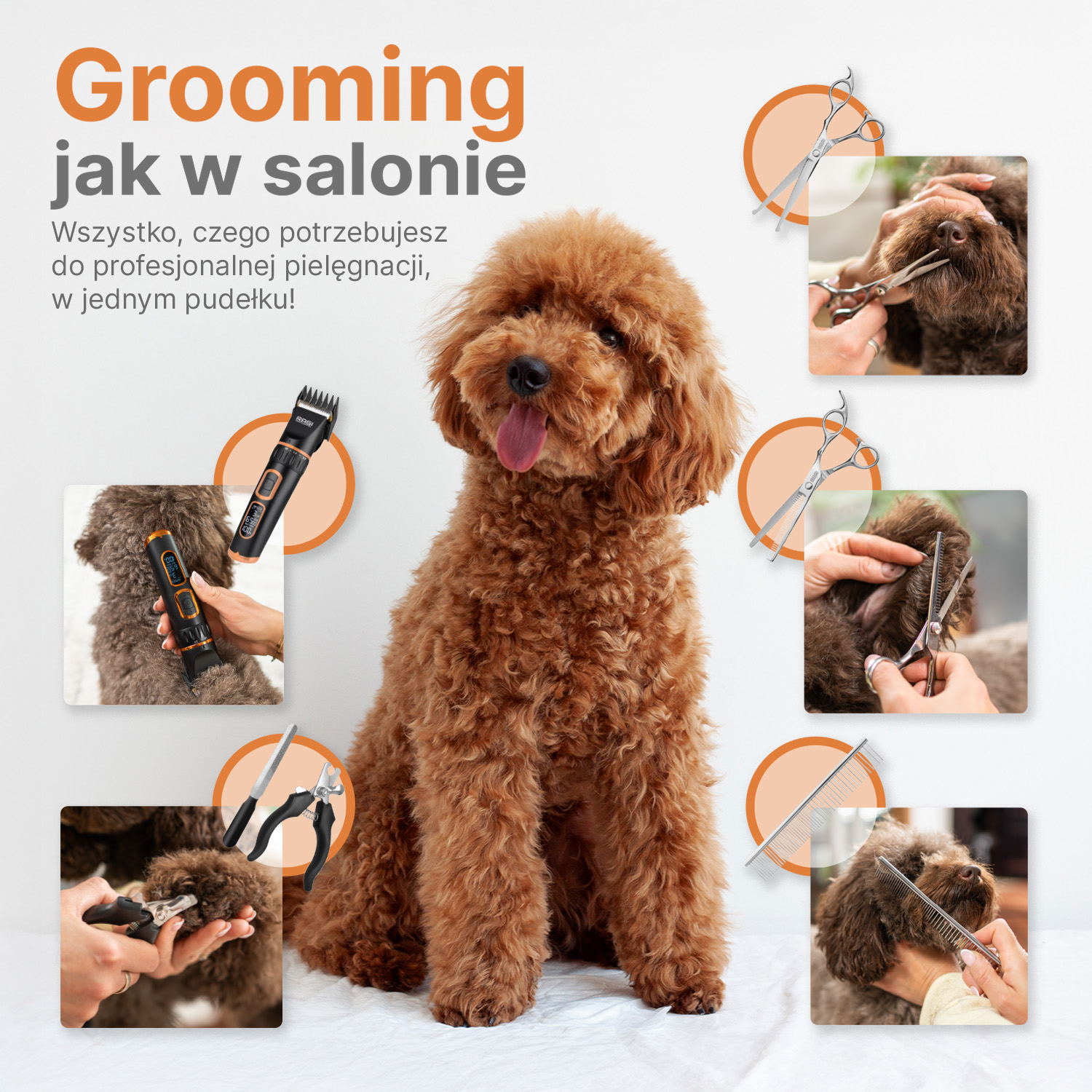 Oprócz maszynki, w zestawie znajdziesz także praktyczne akcesoria: nożyczki i degażówki do precyzyjnego wykończenia fryzury, grzebień ułatwiający rozczesywanie i równomierne strzyżenie, a także obcinaczki i pilniczek do pazurów – by kompleksowo zadbać o wygląd i komfort pupila.