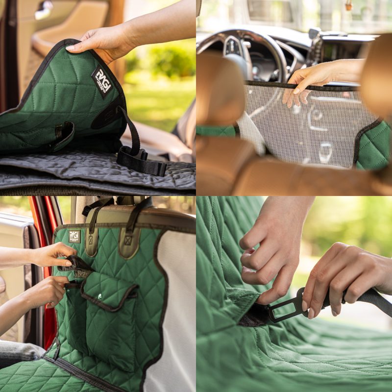 Chroń tapicerkę i zapewnij psu komfort podróży dzięki uniwersalnej, wodoodpornej macie 4w1. Idealna na tylną kanapę, przedni fotel lub do bagażnika – łatwa w czyszczeniu, solidna i bezpieczn