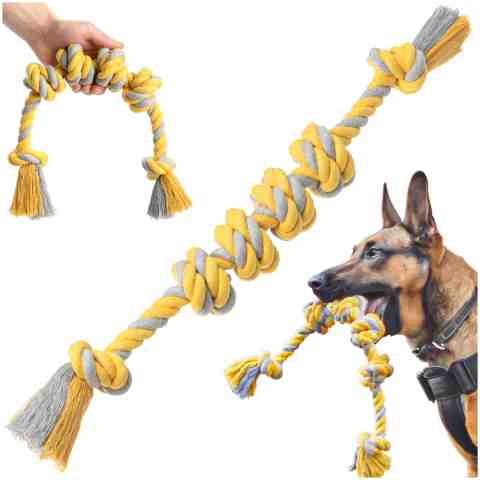 Jest to najmocniejszy szarpak, posiadający dwie pętelki. Wykonany został z gęsto tkanej liny bawełnianej, która jest wytrzymała i zapewni wam wiele godzin świetnej zabawy. Kolorowa i niestandardowa budowa przykuwa uwagę!