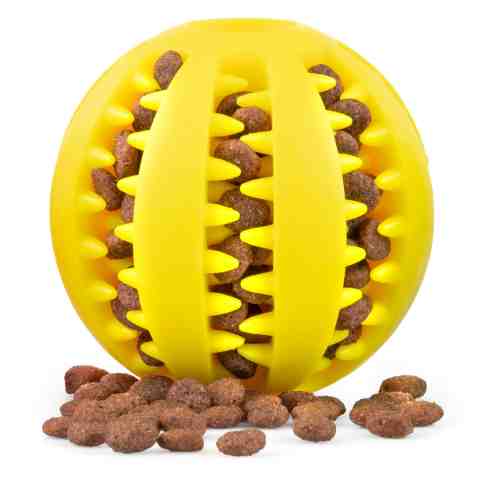 W szczeliny kuli można włożyć ulubione przysmaki zwierzaka, a naturalne instynkty naszego czworonoga zachęcą go do wydobycia smakołyków.