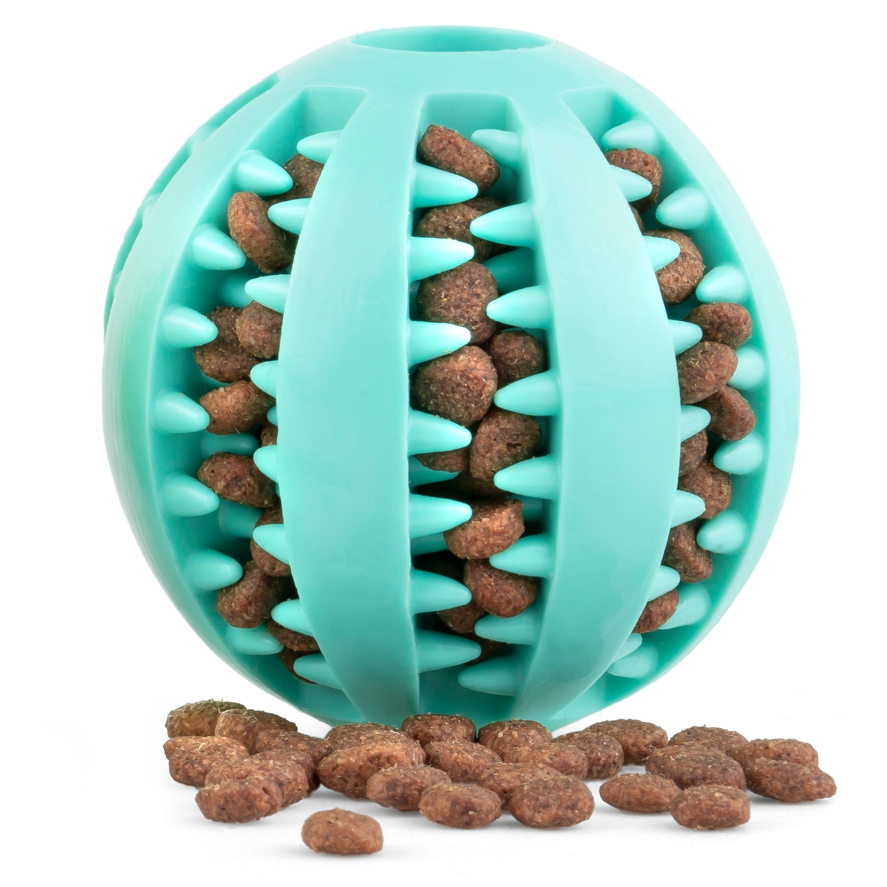 W szczeliny kuli można włożyć ulubione przysmaki zwierzaka, a naturalne instynkty naszego czworonoga zachęcą go do wydobycia smakołyków.