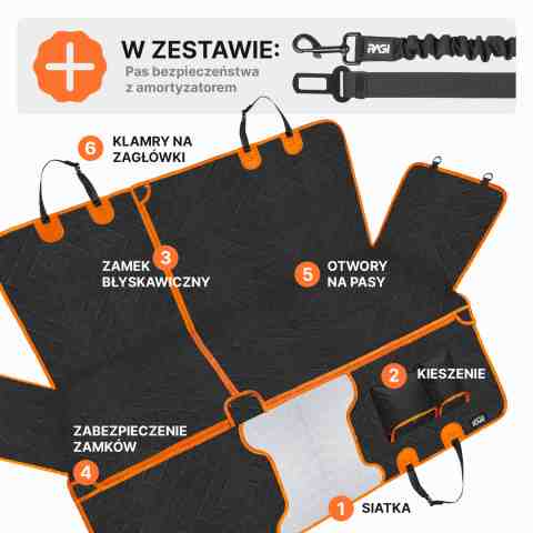 Dodatki: Do każdej maty dołączana jest regulowana smycz samochodowa/pas bezpieczeństwa z amortyzatorem.