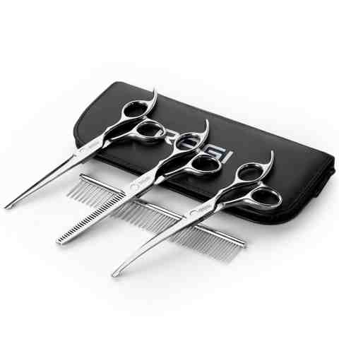 Nasz kompletny zestaw nożyczek został zaprojektowany z myślą o profesjonalnym i bezpiecznym strzyżeniu oraz pielęgnacji psów, zapewniając precyzję i komfort zarówno dla właściciela, jak i pupila. Zestaw zawiera trzy rodzaje nożyczek z zaokrąglonymi końcówkami, minimalizując ryzyko przypadkowego skaleczenia. W zestawie znajduje się również grzebień z dwoma rodzajami zagęszczenia ząbków, idealny do gładkiego i skołtunionego włosia.