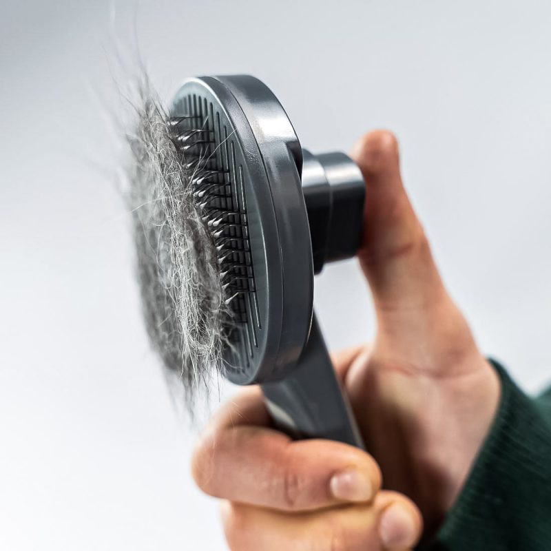Wypadająca sierść psów i kotów często stanowi wyzwanie dla ich właścicieli, szczególnie mających na uwadze utrzymanie porządku w mieszkaniu. Zbitki sierści na podłodze, meblach i w powietrzu często przylegają do ubrań roznosząc kurz i szkodliwe alergeny oraz wymuszają częste sprzątanie mieszkania. Najlepszym sposobem na to zjawisko jest regularne szczotkowanie sierści naszego pupila przy pomocy szczotki, która została specjalnie zaprojektowana tak, by skutecznie i szybko usuwać wypadające włosy z futra naszego psa czy kota. Szybko, czysto i przyjemnie – wszystko o samoczyszczącej szczotce dla psa Regularne stosowanie urządzenia pozwala znacząco zredukować lininie, a co za tym idzie zbieranie się sierści na meblach, podłodze i ubraniach. Szczotka bez uszkadzania skóry usuwa martwe włosy. Wbudowany mechanizm AUTO CLEAN pozwala jednym przyciskiem zebrać sierść i wyczyścić szczotkę. Podczas zabiegu urządzenie delikatnie masuje skórę zwierzaka, jednocześnie rozprowadzając jej naturalny tłuszcz, który nabłyszcza sierść. W przypadku kotów, regularne usuwanie martwych włosów pomaga utrzymać sierść w dobrym stanie, a także redukuje powstawanie jej zbitków w układzie pokarmowym kota, pozytywnie wpływając na jego działanie.